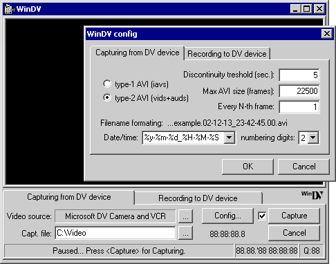 | WinDV is a small and easy to use Windows application for capturing videos from DV device (camcorder) into AVI-files and for recording AVI-files into DV device via FireWire (IEEE 1394) interface. Capturing is very reliable thanks to use of large buffer queue.