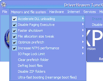 Among them are: ultrafast boot (rearrange boot files); boot folder defragmentation; prefetch folder cleaning; DNS cache optimization; and file allocation size tweak.